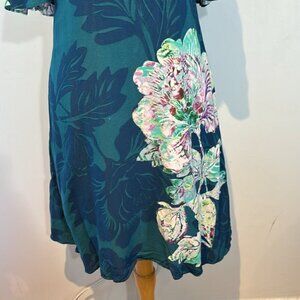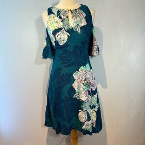 Maeve Anthropologie Elia Floral Print Cold Open Shoulder Dress Size 8 Teal Blue