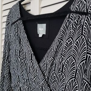 - All over geometric leaf pattern in black and white
