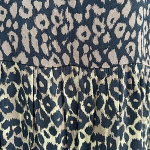 Contrast animal print V neck , 3/4 sleeves, mini baby doll dress. Perfect with cowboy boots or a pair of cute sandals.