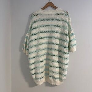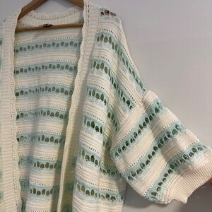 Maeve | Anthropologie | Open Cardigan White and Mint Green Knit Cotton