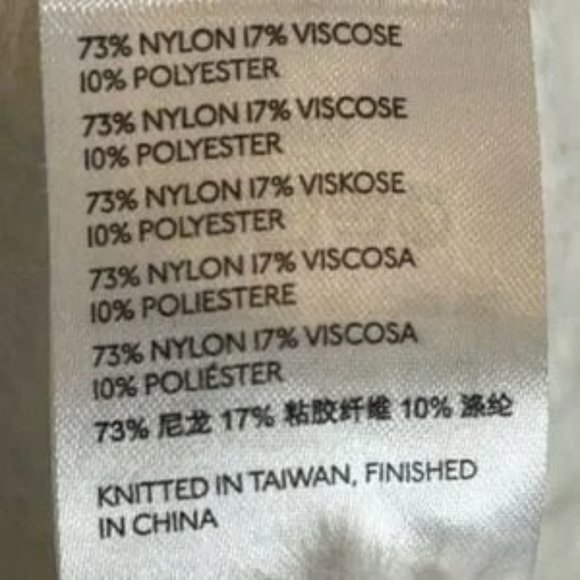23" inches long and 16" pit to pit with stretch to 19". The fabric tag is missing but I posted the identical tag from the stock photo.