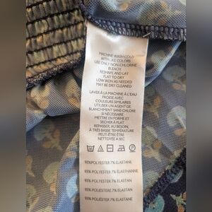 This stunning navy floral top combines the casual vibe of a polo with the feminine detail of a smocked bodice and peplum hem. The mesh fabric (Polyester/Elastane) offers a comfortable, stretchy fit that maintains its shape.