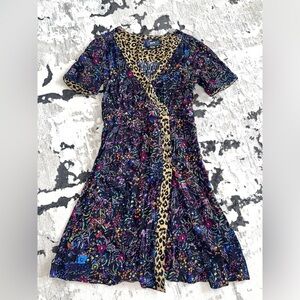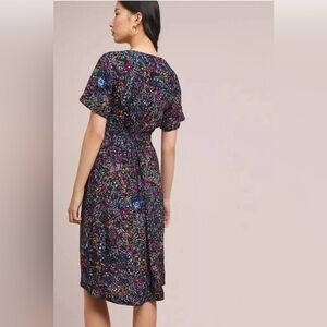 Maeve Anthropologie cheetah floral midi wrap dress Leopard 8 P