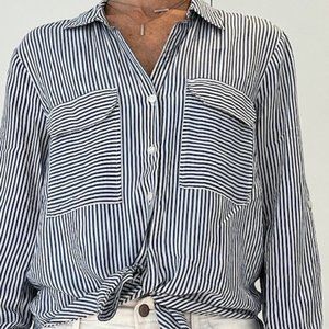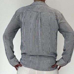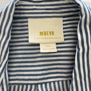 Maeve (Anthropologie), small, long-sleeve button up, navy and white stripes