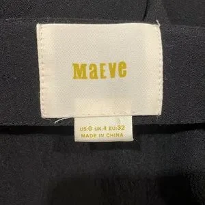 Maeve Blouse From Anthropologie Size 0 Black, crepe like fabric (rayon/viscose) Smocked details with flutter cap sleeves Excellent condition.