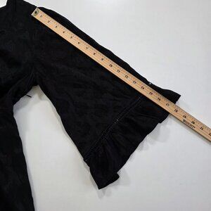 Maeve Christine Dress Women 8 Black Floral Satin Belted Eyelet Lined Whimsigoth
