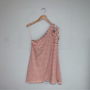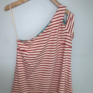 Maeve Dress Women’s Size Medium Anthropologie One-Shoulder Red Cream Stripe