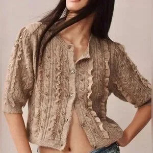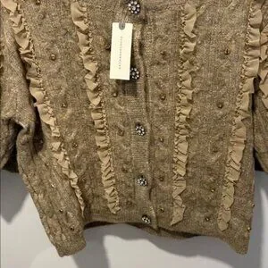 Chic Maeve cardigan with ruffle accents. Features button closure and textured design. Perfect for layering. PTP 19.5” Length 21”