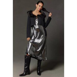Maeve Faux-Fur Collar Y2k Style Cropped Cardigan L