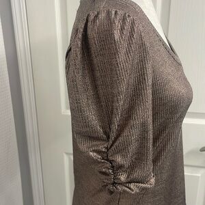 Maeve Gold Shimmer Blouse Short Puff Sleeve Ribbed Stretchy Fabric Size XS