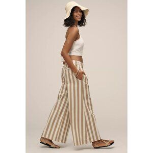 Maeve High-Rise Wide-Leg Jeans White Beige Striped 26