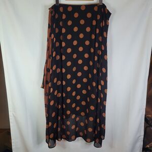 Maeve from Anthropologie stylish polka dot skirt with overlapping layers in beautiful rust brown and black colors.