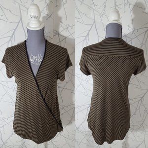 Maeve Olive Green Striped Leila Faux Wrap Blouse