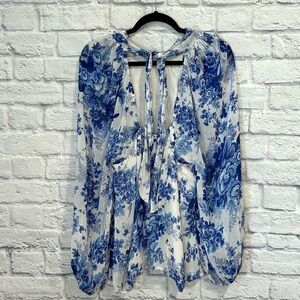 Maeve Sheer Tunic blue and white floral Blouse size small