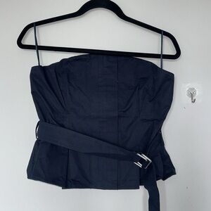 Maeve Strapless Belted Blouse Navy NWT