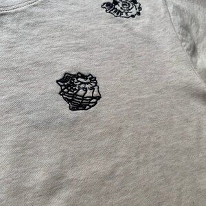 Coastal and effortlessly chic, this Maeve by Anthropologie embroidered tee adds a touch of whimsy to any casual look. Made from a soft cotton blend, it features intricate black seashell embroidery scattered across a creamy off-white base — the perfect nod to beachy elegance.