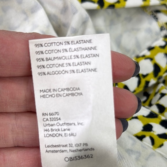 Maeve by Anthropologie Mango Green and Cream Ruched Button Down Shirt
