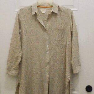 Maeve by Anthropologie Maxi Tunic Top Size S Tan White Plaid Button Down