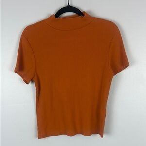 Maeve by Anthropologie Orange Fitted Mandarin Collar Tee Size Large