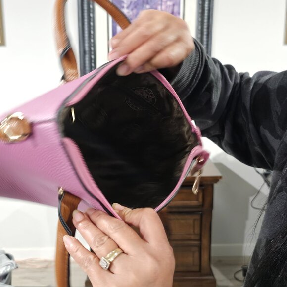 Mafe Purse Pink in color Gold color zipper and accents with initial MF on zipper handle Black lining with pocket on inside