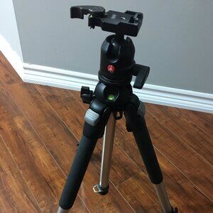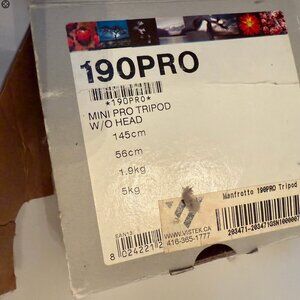 Manfrotto tripod with movable ball-head (model PRO190) kept in storage for a while, used sparingly, barely used. As good as a new one. Comes with manuals and in original box.