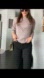 Elegant blush sweater with intricate sleeve design. Perfect for layering.