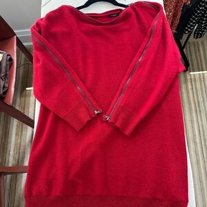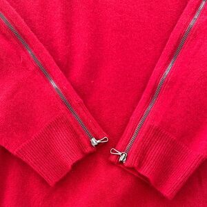 Gorgeous Magaschoni tomato red cashmere boat neck zip sweater. Size M. Super soft highest quality cashmere, with edgy full zip, arm to arm - you decide how much skin to show! Absolutely no pilling - like new! This item is a total steal! 100% cashmere.