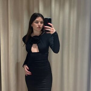 Magda Butrym x H&M viral black rose appliqué long sleeve jersey dress - XL