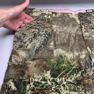 Magellan Sportswear Woods Camouflage Bermuda Cargo Shorts NWT Size 16 100% Cotton Real Tree Max1 pattern Pink interior waistband Front zippered fly with waist button 2 front side pockets; 1 leg cargo pocket with buttons; 2 rear pockets with buttons. Hoops for belt. See photos for additional approximate measurements when garment is laying flat Any questions please contact me! Top Rated Seller / Fast Shipper / Open to All Reasonable Offers