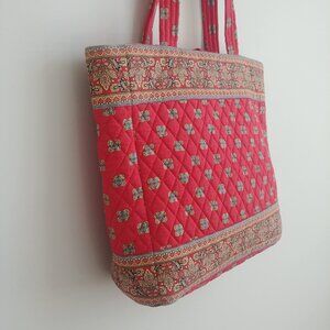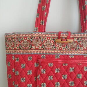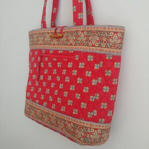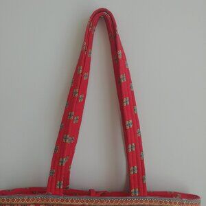 Maggi B 100% cotton quilted large flat bottom red tote bag pouch set