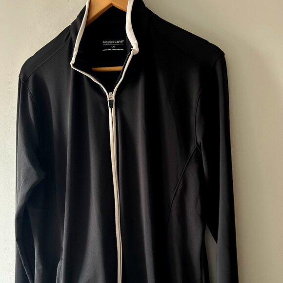 Perfect condition, never worn. Full zip with front zip pockets. Great for golf! Polyester and elastane blend.