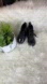 - Adorable Maggie and Zoe black combat boots. Worn once for Halloween. Super cute black patent boot with sparkly laces. Zippers on inside of boot to help with easy on/off.