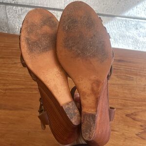 Very gently worn pre-adored leather/wood wedge sandals from Argentina size 8. Argentina is known for their quality leather goods and these are from a well-known luxury brand in Buenos Aires. My husband and I went shoe shopping and bought his & hers matching leather shoes when we were there 🤣💞. Selling because we live on an island now and don’t get dressed up anymore. Post is for the ladies wedges only, men’s posted separately.