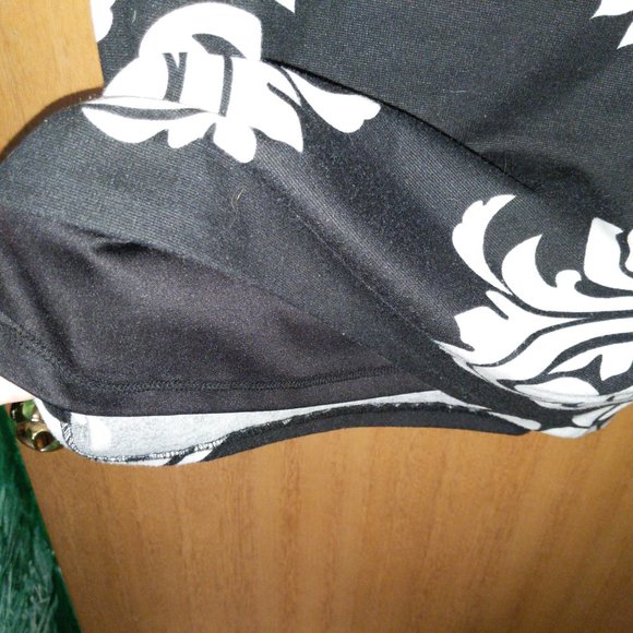 Maggy London Black and White Dress with Cap Sleeve and Vine Design