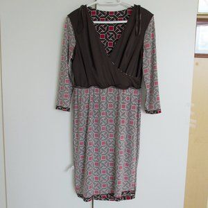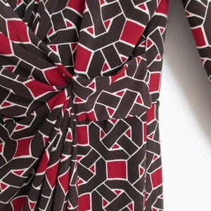 Maggy London Brown & Red Jersey Faux Wrap Dress