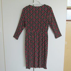 Super comfy faux-wrap dress (no ties). 3/4 sleeve -- see measurements.