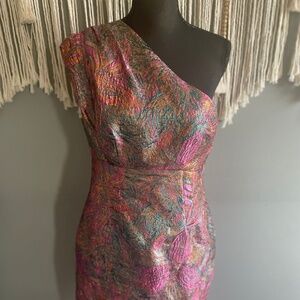 When every minute counts, Victoire rises to the occasion. This masterfully constructed cocktail dress features an elevated one-shoulder design and figure-defining silhouette that commands attention without saying a word. The textured metallic jacquard elevates every moment, from charity galas to award ceremonies. A modern heirloom that makes the exceptional feel effortless.
