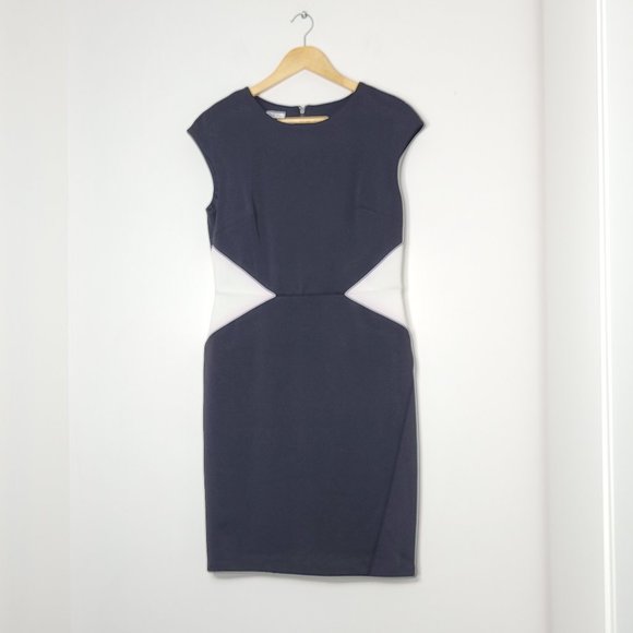 Maggy London Women's Black White Front Asymmetric Slit Darting Sheath Dress 10
