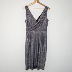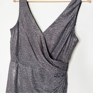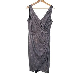 Maggy London Womens Pewter Gray Faux Wrap Sleeveless Dress Size 10 Crinkle Event