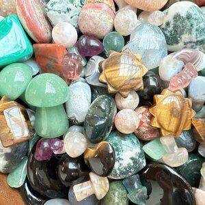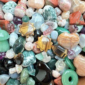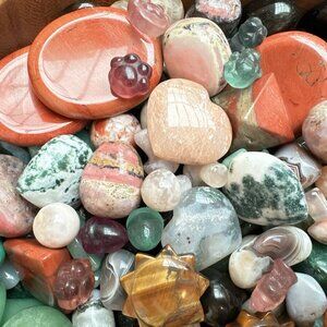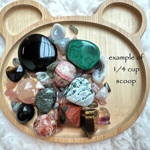 ♥ stones and carvings are approximately 10-45mm in size | each scoop may include: chips, carvings, spheres, tumble stones, flat stones, worry stones, etc.