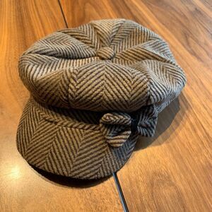 Hot trend in head gear. Newsboy peaked cap, this one in woven chevron pattern of beige and brown, fabric content unknown. Button detail and feminine little bow to soften the look. In excellent used condition with no wear or damage detected. Wear with your chunky sweater, jacket and favourite jeans, skinny, boot cut, wide leg, or perhaps treat yourself with a new pair from Our Closet (some suggestions shown all listed and priced separately). Works great with authentic Coach handbag and walking shoes, also listed in Our Closet. Great little cover up on a bad hair day! Just for you from Lemon Squeezy Shop🍋