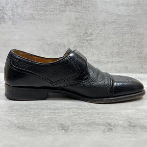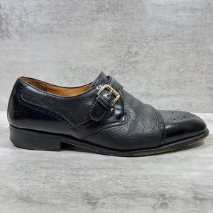 Magnanni Monk Strap Brogue Leather Shoes - Men's Size 9.5 M - Black
