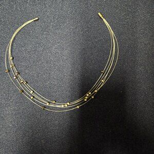 The second necklace is layered in 5 strings with gun metal casing and shimmering stones on the inside. Its longest point is 16" in length.