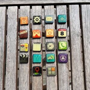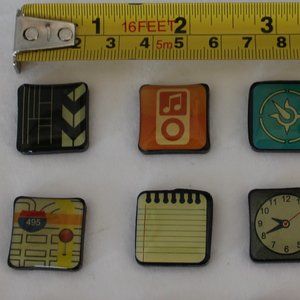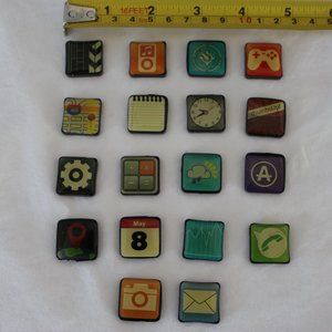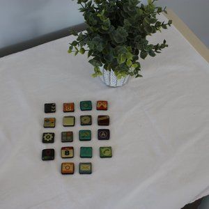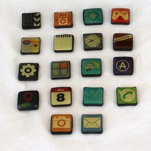 Multi-coloured, office themed, 18 little square magnets. Excellent used condition.
