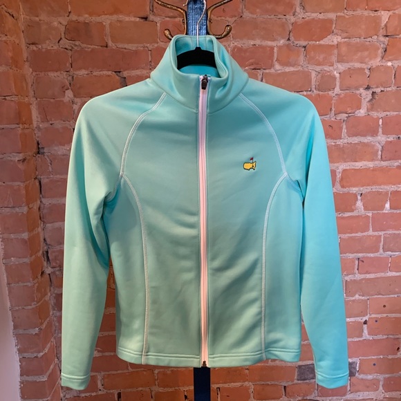 Turquoise full zip in amazing condition. Masters mercy featuring the signature logo on the left chest and the detailing on the sipper pull.