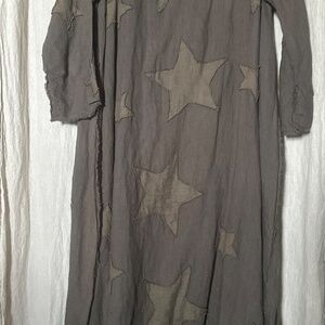 Magnolia Pearl Cassiel Linen Star Applique Distressed Dress - CLAY