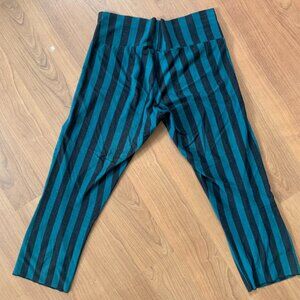 Maha Devi Design Leggings - Teal & Black Vertical Striped - Cropped - XS-S