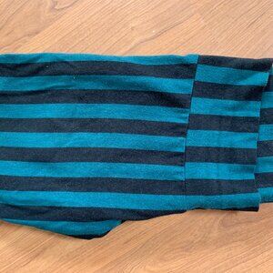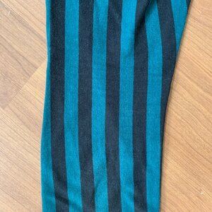 Beautiful Maha Devi Design leggings, in teal & black vertical stripes. Cropped style, about mid-calf. These are the softest, comfiest leggings, and made from bamboo and organic cotton. Wise, flattering wasitband. Size XS, but can easily fit a Small, maybe even Medium. In great lightly used condition. Added some stock photos that show what they look like on, however the stock photos are full-length and aubergine, not cropped and teal.