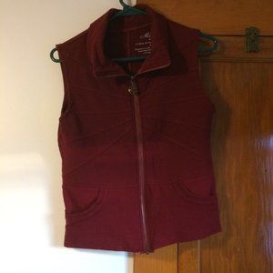From one of the best festival/eco-design brand : Raya vest in deep red/rust colour. Very nice sewing details and hardware. This is truly a fantastic top ! Can be worn as a layer or by itself.