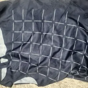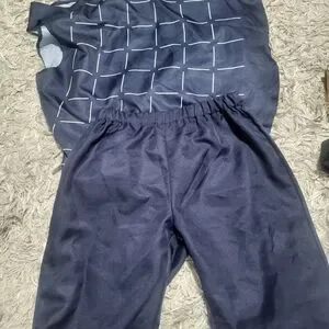 Stylish navy blue top and pants set with a white grid pattern. Perfect for casual outings.